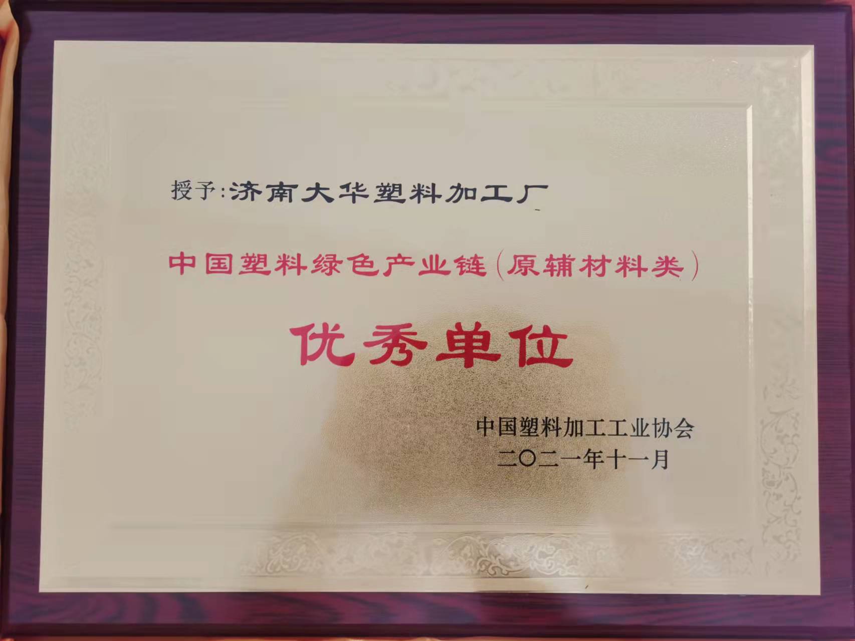 濟南(nan)名彩通信设备有限公司被評(ping)爲中(zhong)國塑(su)料綠(lü)色産(chan)業鏈(lian)優秀(xiu)單位(wei)!